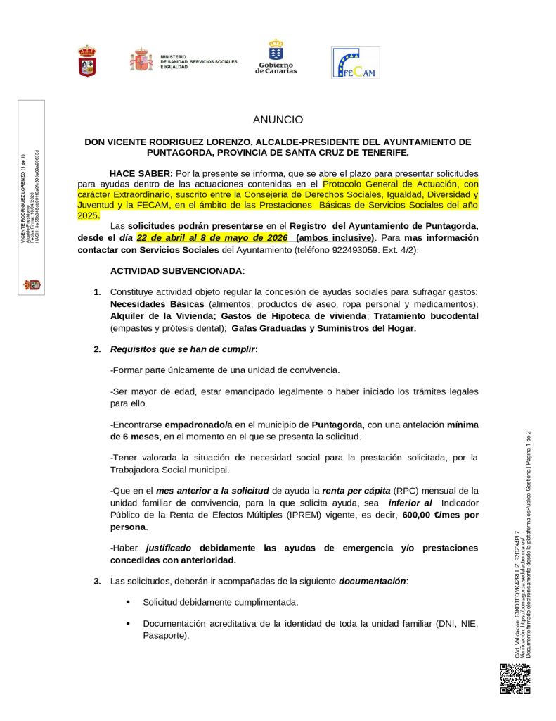 Puntagorda, Encanto Rural > Servicios Sociales > AYUDAS DE EMERGENCIA SOCIAL