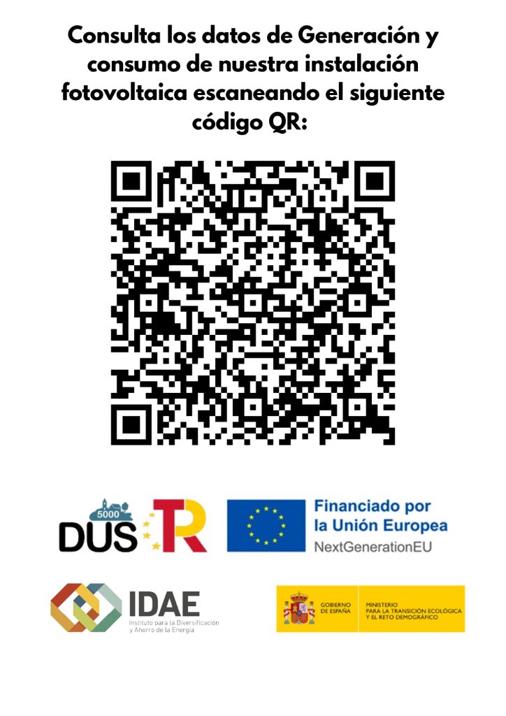 Este proyecto se ha podido realizar gracias a cofinanciación por Unión Europea a través del Fondo Europeo de Desarrollo rural (FEDER) en el marco del programa DUS5000, dentro de la Medida 2. Instalaciones de generación eléctrica renovable para autoconsumo, con o sin almacenamiento, con Número de Expediente: PR-D5000-2021-000755